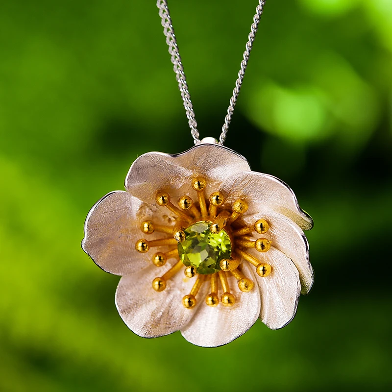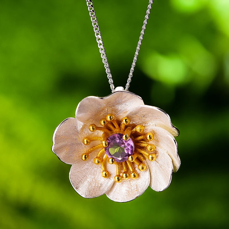 Lotus Fun Blooming Anemone Flower Pendant without Necklace Real 925 Sterling Silver Handmade Designer Fine Jewelry for Women look the best product that related to