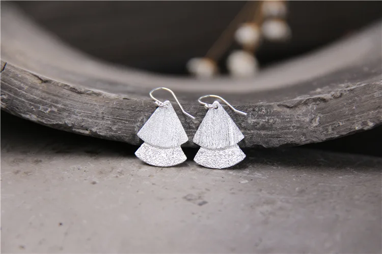 S925 Sterling Silver Dangle Earrings Christmas Tree Drop Earrings Fan Shape Matte Original Silver Earrings New Year Gift TSE453 200001680