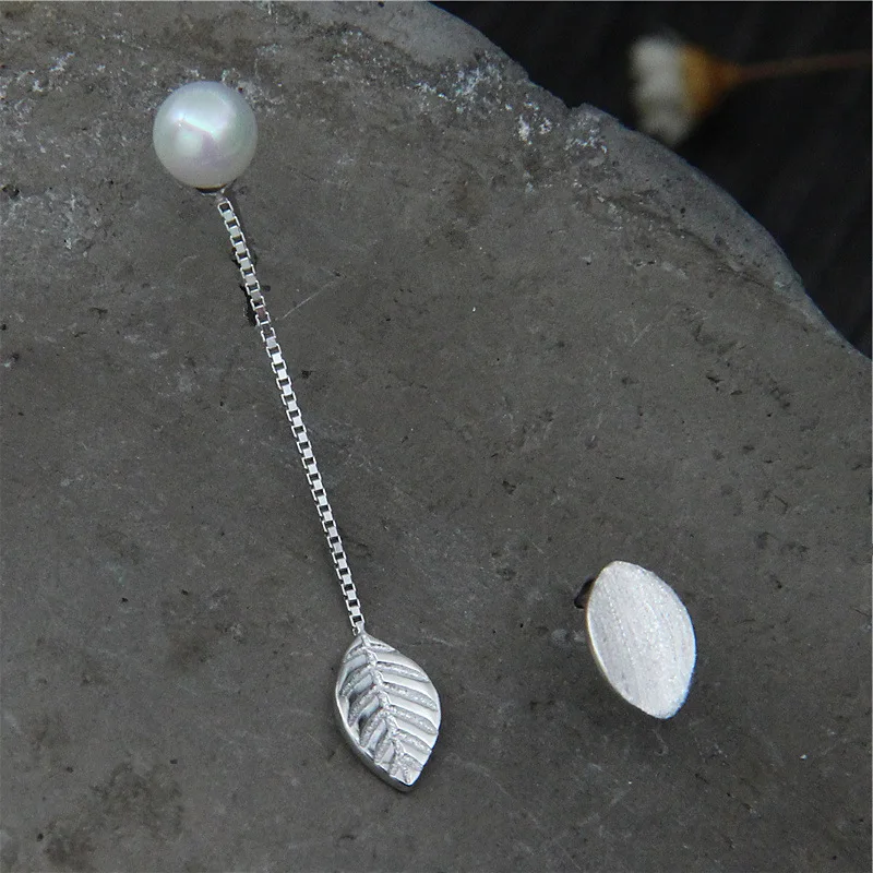 Matte Leaf 925 Sterling Silver Jewelry Earrings Ear Line Women Long And Short Asymmetrical Silver Stud Earrings Gift TSE483 look the best product that related to